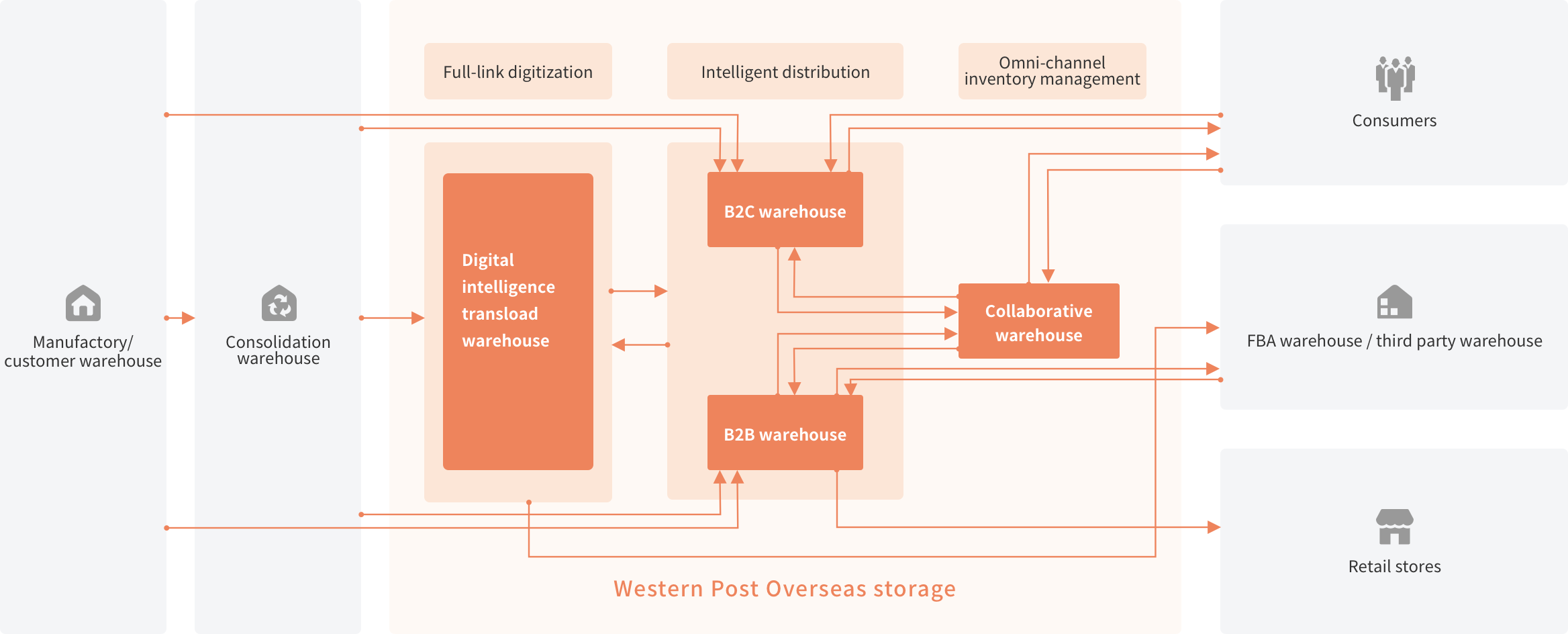 Western Post has 26+ overseas warehouses worldwide, total 4.3+ million sqft warehoue